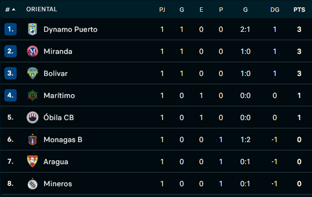 Por su parte, el grupo Centro Oriental niveló el certamen con su primera jornada oficial, donde Dynamo Puerto, Miranda y Bolívar picaron adelante con triunfos ajustados para sumar sus primeros tres puntos. En la zona occidental, Atlético Barinas también logró su primera victoria al derrotar 2-1 a Frontera, mientras que Ureña y Puerto Cabello «B» dividieron honores con un empate a un gol.