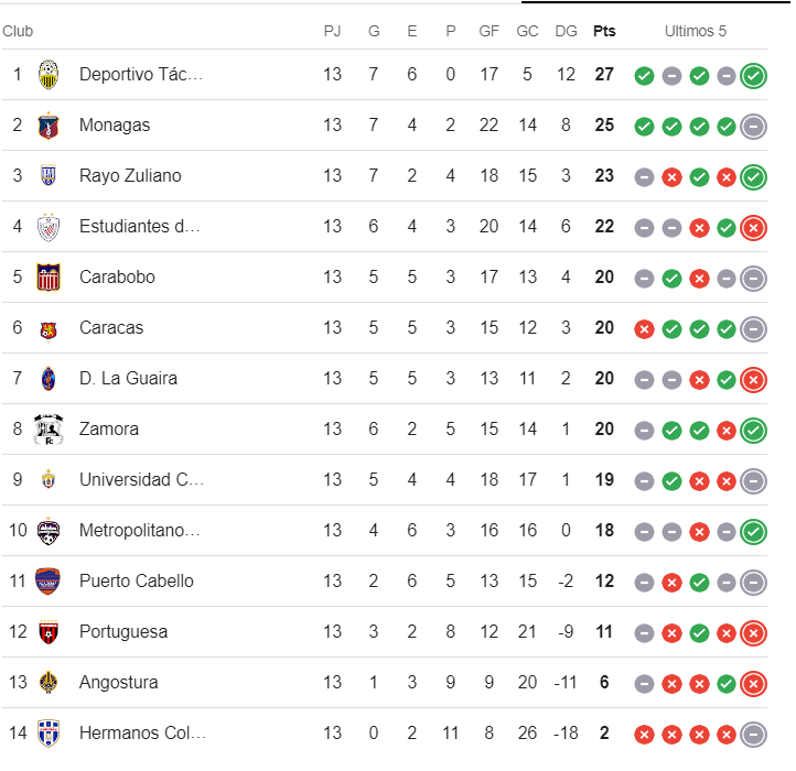 Este sábado finalizó la ronda regular del torneo clausura del fútbol profesional de Venezuela, y el Deportivo Táchira logró el primer cupo de clasificación a la fase de grupo de la Copa Libertadores de América 2025, tras lograr la mayor cantidad de puntos en la tabla acumulada (apertura y clausura) de los dos torneos cortos.