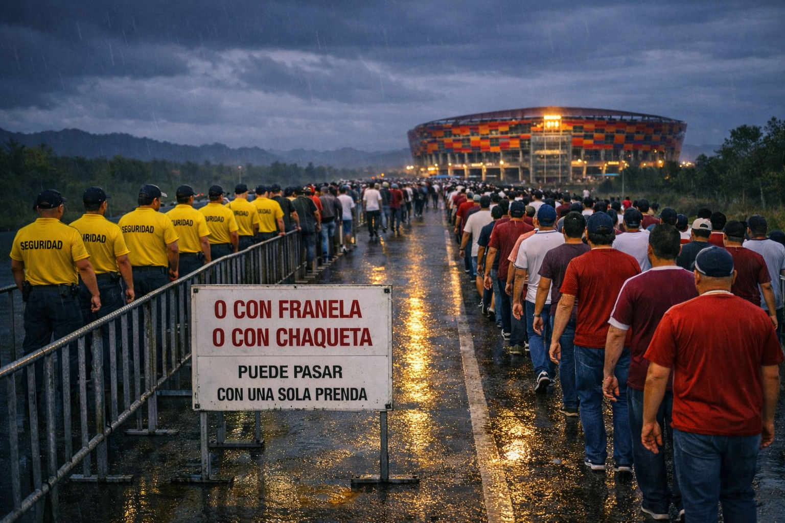 Dejar el carro a siete kilómetros del estadio en un centro comercial habilitado por primera vez. Pagar un transporte improvisado que recorre 4 kilómetros. Llegar al sector La Campiña lugar donde comienzan los cordones de seguridad. Y allí, en plena autopista Barquisimeto–Acarigua, aparece la medida que desató el caos: la prohibición de ingresar con dos prendas de vestir.