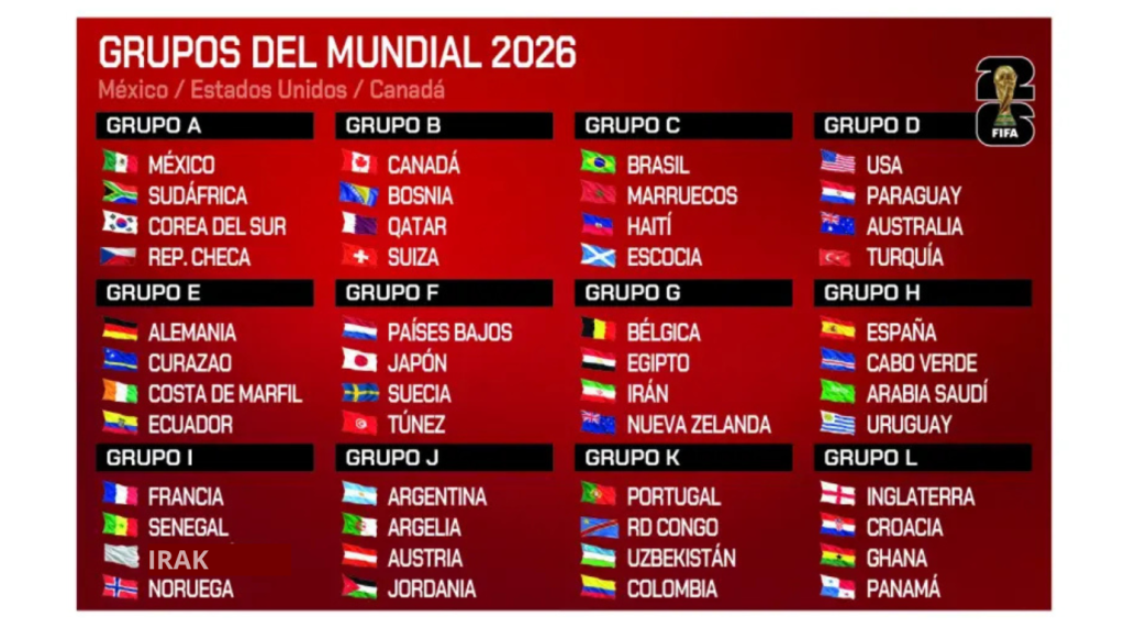 Con la clasificación de Irak, el rompecabezas está completo. Los 12 grupos de 4 selecciones están listos para comenzar la travesía por Estados Unidos, México y Canadá.