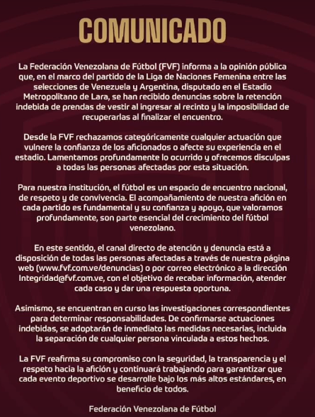La Federación Venezolana de Fútbol lo ejemplificó recientemente con un comunicado que repudiaba la retención de prendas de vestir en el Metropolitano de Lara. Pero ese repudio omitió un detalle esencial: esa práctica ya se había aplicado en Maturín. Es decir, la FVF condenó un hecho que no solo conocía, sino que había permitido. El comunicado, más que una explicación, fue un intento de distanciarse de decisión que era de su conocimiento.
