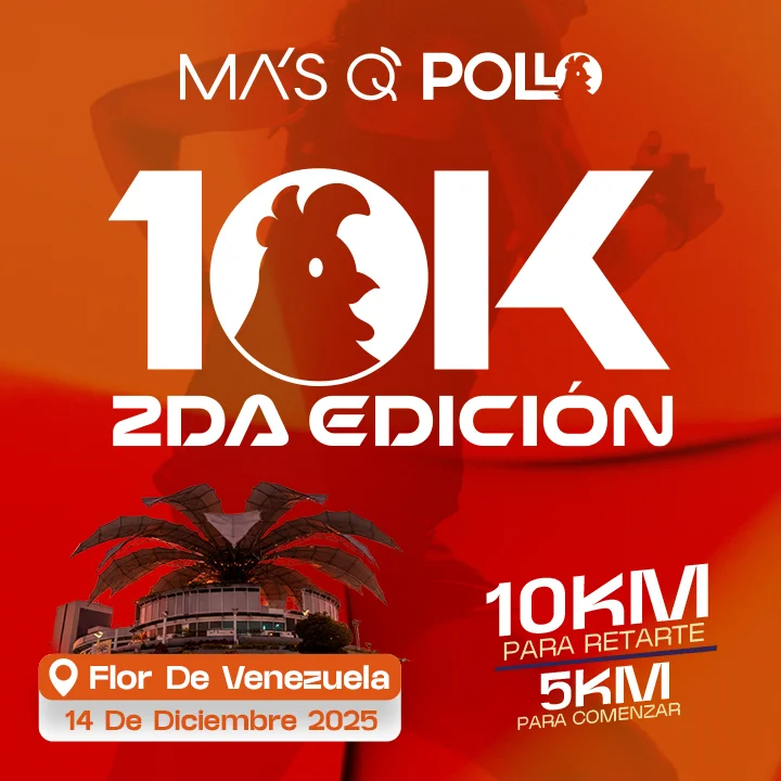 Este miércoles 22 de octubre, en las instalaciones de Lidotel Barquisimeto, fue presentada oficialmente la II edición de la Carrera Mas Q’ Pollo 10K, que se realizará el domingo 14 de diciembre de 2025 con salida y llegada en el Monumento La Flor de Venezuela, en el este de la ciudad. La presentación reunió a medios locales, patrocinantes y representantes de la organización.
