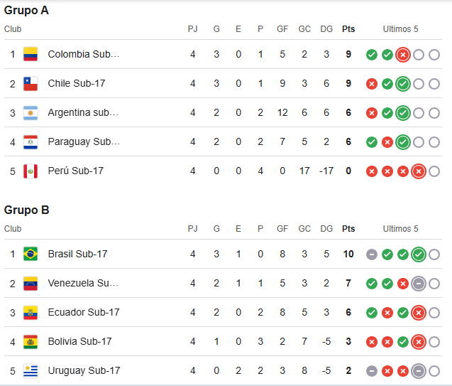 Con los marcadores de este sábado, Brasil ganó el Grupo B con 10 puntos, seguido de Venezuela con siete, Ecuador con seis, Bolivia con tres y Uruguay con dos.