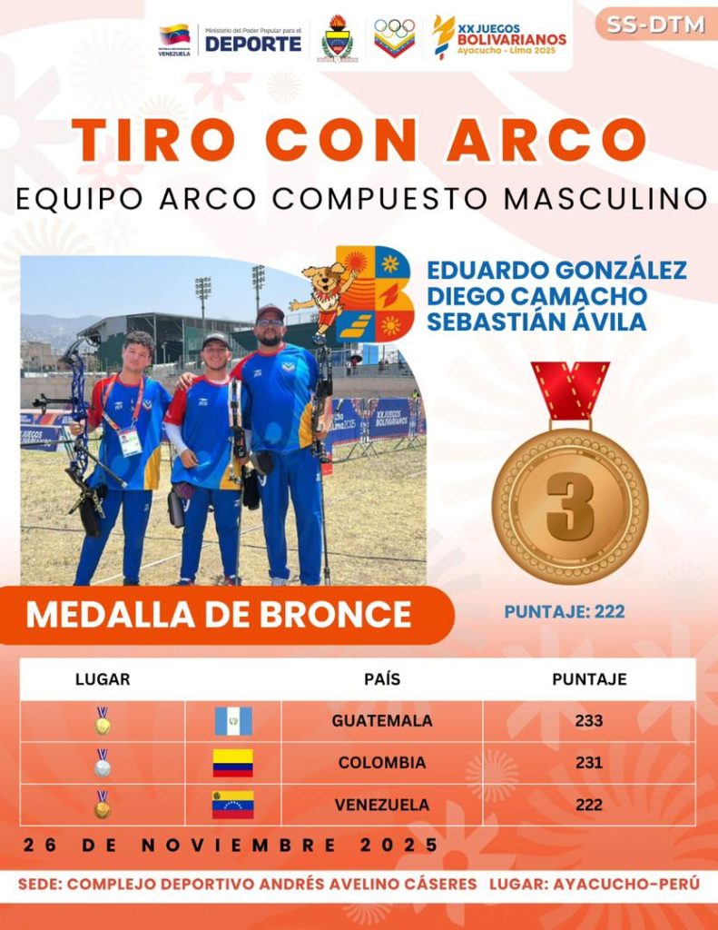 La delegación venezolana inició la jornada del 26 de noviembre con resultados destacados en los XX Juegos Bolivarianos Ayacucho–Lima 2025, sumando medallas en canotaje y tiro con arco que reafirman el protagonismo nacional en la cita deportiva.