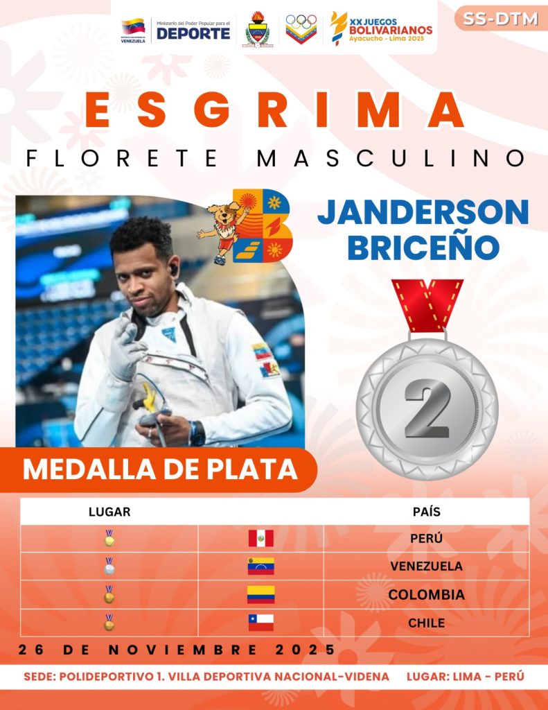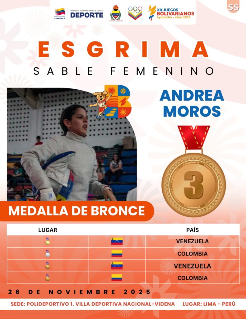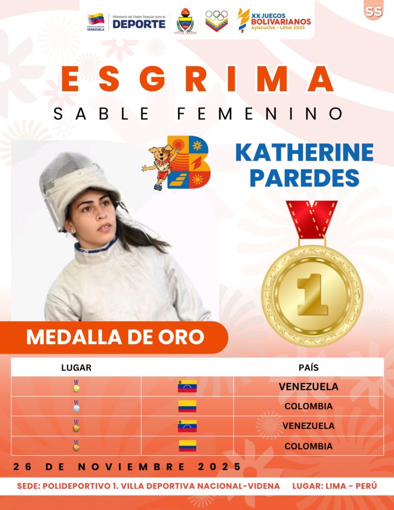 En esgrima, Katherine Paredes se coronó con la medalla de oro en sable femenino, Janderson Briceño obtuvo plata en florete masculino y Andrea Moros se quedó con el bronce en sable femenino.